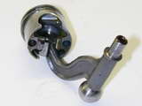 This shot shows the cast and machined piston with the slipper-block in place. The piston has been allowed to fall away 90° from its normal orientation to show how the block rides in piston. The conrod itself is a steel forging. The parallel shank of the rod rides in a bronze bushing pressed into the aluminium crankshaft. The piston has a definite top and bottom: one end of the "C" shaped channel the slipper block rides in has the corners milled away to clear the rod as it rocks side to side. Incorrect assembly is going to result in a tight spot followed by unexpected metal fragments. For reference, the orientation is this posed shot is exactly wrong!
