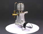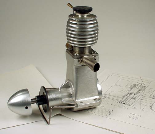 The plans I have were cleaned up and archived by MLADEHO KONSTRUKTERA sometime between 1946 and 1950. I think that translates as Model Builder? Anyhow, it was a magazine and the drawings, still dated 1942, were published in that magazine in 1960. The engine I have is built in accordance with those plans. It is a whopper of a thing, standing 4 3/4" tall! It has a bore of 16mm, stroke of 22mm and a displacement of 4.5cc. Weight is 300gm, or about 11 ounces. He recommended a 380mm x 220mm prop, which works out to be about 15" x 9" pitch. RPM is said to be 5500, producing 1/4 HP. The recommended fuel is 11 parts kerosene, 6 parts oil and only 3 parts ether.
