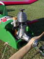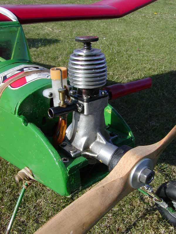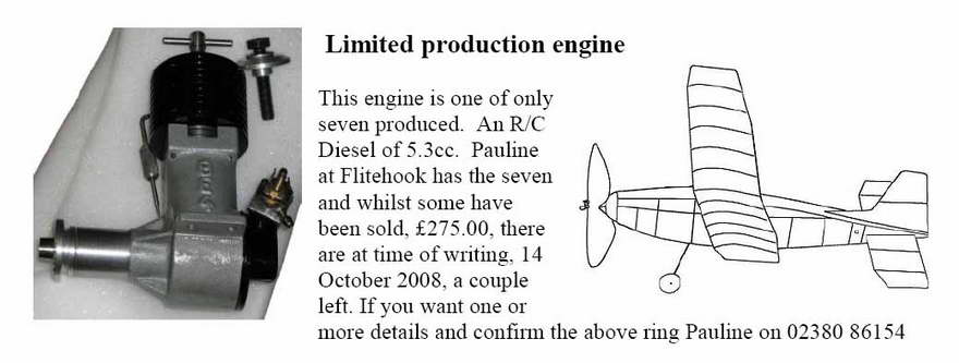 But Ken thought he knew of yet another version and sure enough, a day or so later, he provided this advertisement showing a rear induction version fitted with an R/C throttle and having a distinct Barbini feel to the upper crankcase around the exhausts (we suspect that what had been an inlet mounting flange on the side-port version is another exhaust port of this version). The asking price is a bit steep, but Ken says that John Hook of Flighthook is a great bloke, having climbed the unclimbable tree to retrieve one of Ken's wayward models some time back.