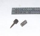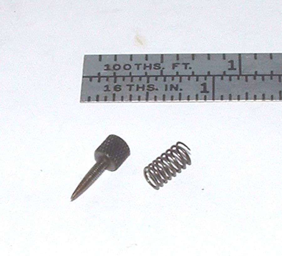 The other obvious difference lies in the shape of the needle and its friction spring. Here are the parts in question. They certainly appear original, so we conclude that this is another consent to the relaties of quantity production. How would you wind a barrel shaped spring anyway? Damned if I can think of any way that does not capture the mandrel for all time--although spring-winders are clever folk, so there probably is a way.