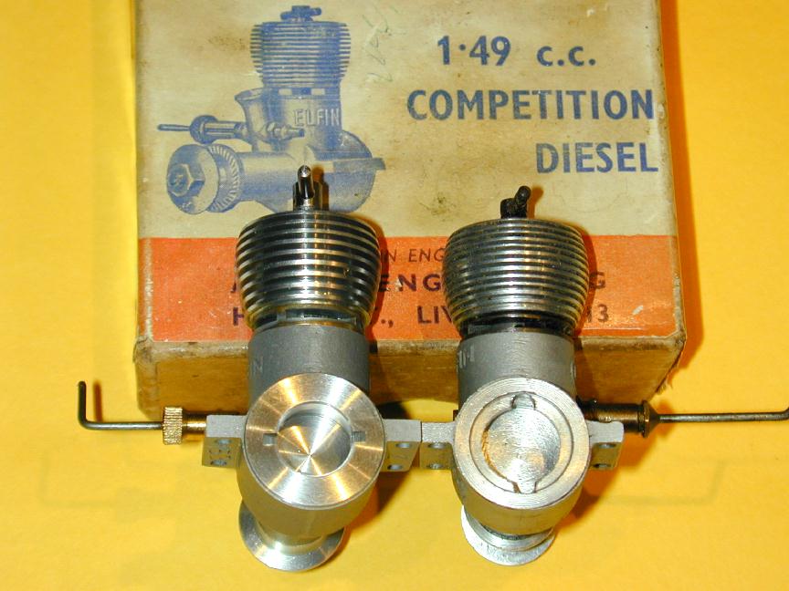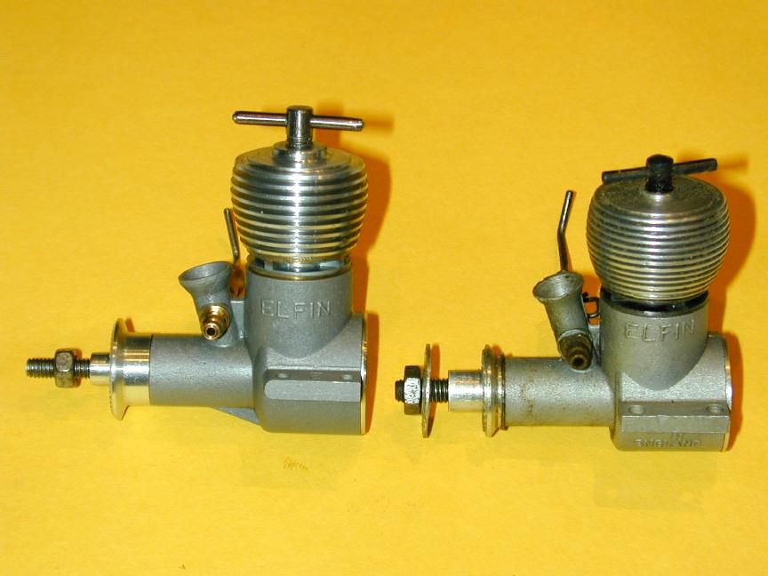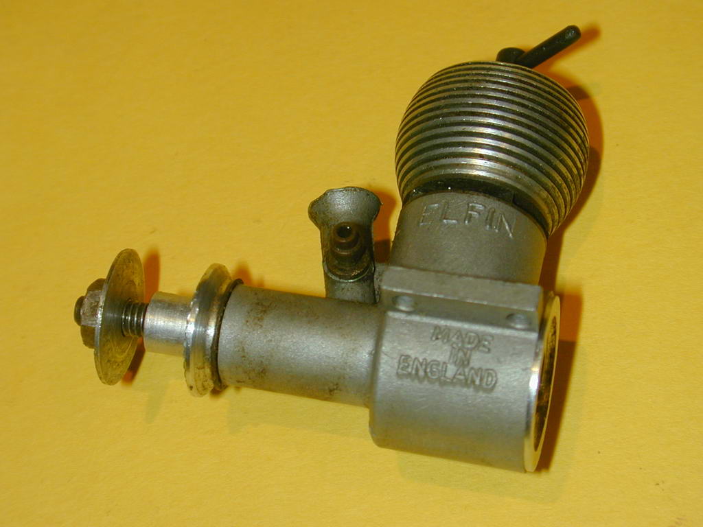 An original can be easily distinguished from a repro by the crankcase differences. But placing an original within the production span is difficult. The engine reviewed by Sparey in 1950 clearly has 13 fins. So does my example but Ken's engines show fewer fins, some variation of the thickness of the upper fin, and a "V" shaped comp screw. All Elfin engines had bright cases, but my NIB engine has a "blasted" case. It also has a 'wrong' needle in a correct spraybar, with (perhaps) a year of manufacture indicator after Aerol closed down. Very strange... Based on the evidence, one conclusion would be that it was assembled from Aerol inventory parts, supplemented as required by other bits after normal production ceased, perhaps using cases with cosmetic defects that required blasting to cover them up.
