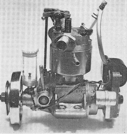 Earlier Gannet engines were intended for use with a high-tension coil and battery ignition system and standard engines of this type are, in fact, still available. The motor submitted for review, however, was equipped with the Gannet rotary magnet type magneto. Complete with magneto and 14 oz. fly-wheel, the engine weight 3 lb. 10 oz. The standard engine (less coil condenser and battery) is about 13 oz. lighter.