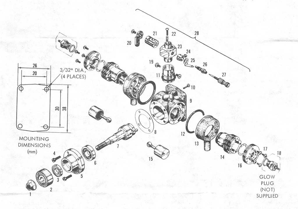 When he reviewed this engine in Model Airplane News of March, 1980, Peter Chinn began by saying that his initial impression was that the engine was "a neatly made novelty, ingenious in certain respects, obviously a collector's item, but unlikely to attract attention as a practical alternative to single-cylinder engines of similar displacement." [1]. He went on to say that after full evaluation, the engine turned out to be far better than anticipated.