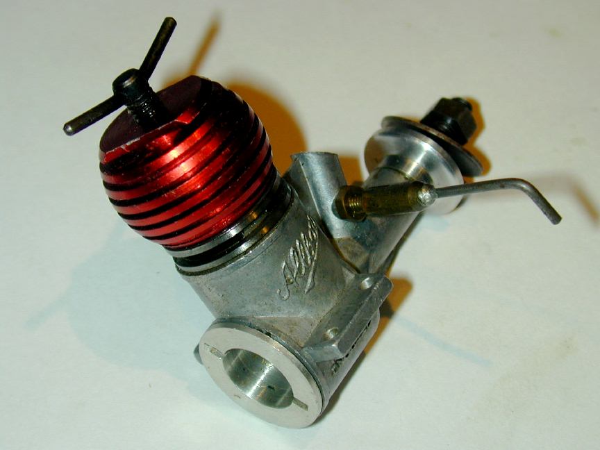 At 2.25 oz, the Javelin is certainly a light weight engine for its capacity—lighter even than the smaller 1cc Allbon Spitfire. The case is a very fine die casting with no more than the minimum amount of metal required to hold the moving bits in place. The "Allbon" name and "Made in England" are delicately reproduced in raised lettering. There are no discernable differences between the Mk1 and Mk2 cases (besides, die changes are expensive!) The fact that the shaft runs un-bushed in the case contributes to this lightness, although I'd not want see one rammed into the hard, dry, baked, unforgiving school yards we flew control line over down here in the 50's. Possibly the soggy fields and meadows of Olde England were more forgiving—though Ron Warring does warn about what a little dirt following a prang will do to the soft shaft bearing.