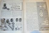 Aeromodeller reviewed the Javelin three times. The first test was conducted in July 1950 by Sparey. He found it to be a light, easy starting, powerful engine, delivering peak BHP of 0.10 at 12,000 RPM. The Mk1 is externally descernable from the Mk2 pictured above by the L-shaped "bent-over" compression screw and plain-faced prop driver. Internally, the engine featured rather unconventional piston construction. The gudgeon pin (wrist pin to US readers) was carried in a dural turning that fitted inside a light, "Meehanite" cast-iron closed sleeve. The top sides of the outer piston were conical to assist transfer, with the assembly being optimistically held together by a slotted countersunk screw in the center of the crown, truncating the cone shape. The prime reason for this arrangement would seem to be the three generously dimensioned internal transfer flutes arranged between the three peripheral exhaust ports. By fully enclosing the pin, there was no danger of it jamming the engine up solid with attendant disastrous results. A feature I whole heartedly approve of on both Marks is the flats for a spanner milled on the top fin of the cooling jacket. Although it requires an extra operation (and probably set-up), it affords some protection from the dreaded multy-grip treatment that so many Taipans of similar configuration have suffered under the urgency of field maintenance.