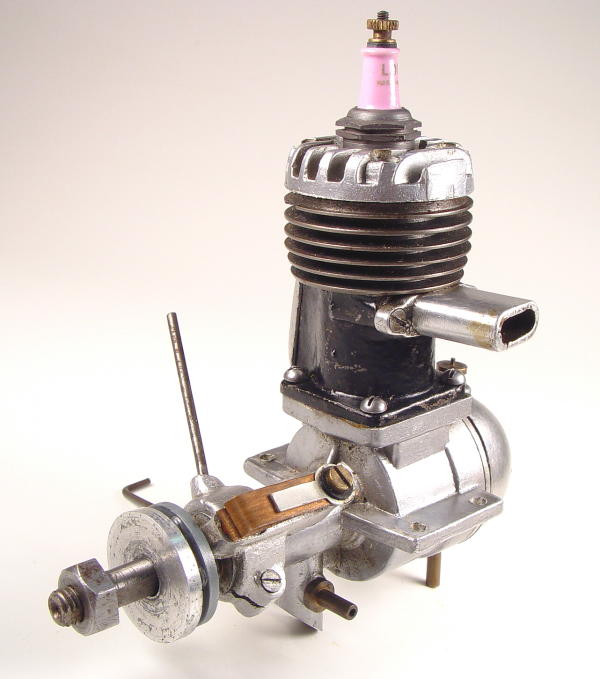 Notes:The Reeves engine comes from Britian of the late 40's. Both die cast and sand cast versions were made in 5 and 6cc capacity. There is no way to tell the capacity, except by measurement of the piston. To further complicate matters, the engine was offered complete, or as a D.I.Y. kit of parts. Externally, appearence and finish is pedestrian, but according to Bert (who owns the example seen here), the internal workmanship and fits are exceptional. Bert says that he read that Reeves guarenteed their engines would "hold compression" overnight, or they would refund your money.