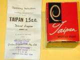 There is a resemblence of the case to the later Series 67 Glow, with the latter being left shiney, while the 66 is blasted to an attractive matt grey finish. However a close, detailed examination will show that the 66 case has a web between venturi and cylinder mount that is absent on the glow. There is also a small, mysterious flat on the front of the series 66 cylinder mount; again absent on the glow. This engine came to me the long way: via two trips over the Pacific Ocean, as can be seen by the stamp on the instruction leaflette.