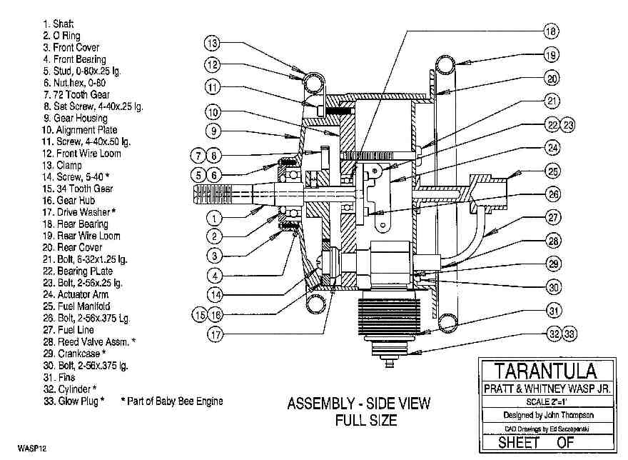 For those who have the lathes and milling machines required for such a project, Mr. Thompson is making available a five-sheet set of machinist's drawings. There is also a lengthy set of step-by-step notes on the fabrication of the Wasp Jr., and a detailed parts list and addresses of manufacturers and suppliers. The whole thing is available from Mr. Thompson for $25.00 (425 E. McKellips Rd., Lot #62, Tempe, AZ 85203).