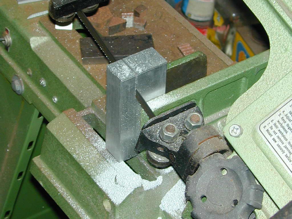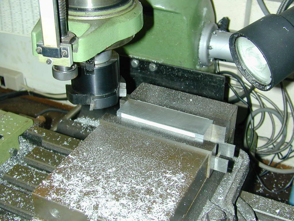 Work starts with a nice lump of 2024-T3 allow, sawn from a 1" thick bar once intended to Thorp T-18 wing mounts. After sawing, the blank was brought to the precise dimensions using a fly-cutter. Only one of the faces was fly-cut. This would become the side that mates with the cylinders and great care was taken to preserve it in all subsequent operations.