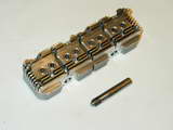 First task is to simulate the four separate heads by cutting "separation channels" that line up with the three middle pairs of hold-down bolt holes. The simplified saw alignment, I made a little plug that fits into the counter-bore recesses of the head bolts. The plug has a slot cut across the diameter on its end. This was just pushed into a counter-bore and the saw aligned in the slot (Photo #30). This worked fine.
