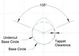 The actual tappet clearance will vary with the engine's operating temperature, and to a degree, so will the cam durations. But from the figures shown above, the need to introduce an allowance for the tappet clearance in the base circle while maintaining the correct location of the flank ends should be obvious.