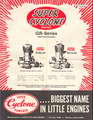 As introduced. in 1939, the Super Cyclone had the designation "G" series following the A to F model Baby Cyclones marketed between 1936 and 1940 and had a nominal displacement of .0647 cu in. In the summer of 1940, however, the "GR" series was announced to comply with the 10cc limit for teathered race cars then becoming so popular. It was the GR series now renamed Super Cyclone Inc., reintroduced after the war, that this articles focuses on.