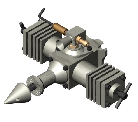 Instead, they used a two piece crank where the rear section is a disk with two pins that is cam-locked into the front section with a cap head screw. Although this looks delicate, it obviously works and works well—though it will have the benefit of being hardened and ground which home shop parts seldom are. Bert Striegler points out that the forces on the crank are essentially balanced due to the opposed firing configuration, so the joint is not as highly stressed as it at first seems. If this design goes any further than the neat image rendering, you'll read about it here. And thanks to Joe for preparing the 3D CAD shots seen here.