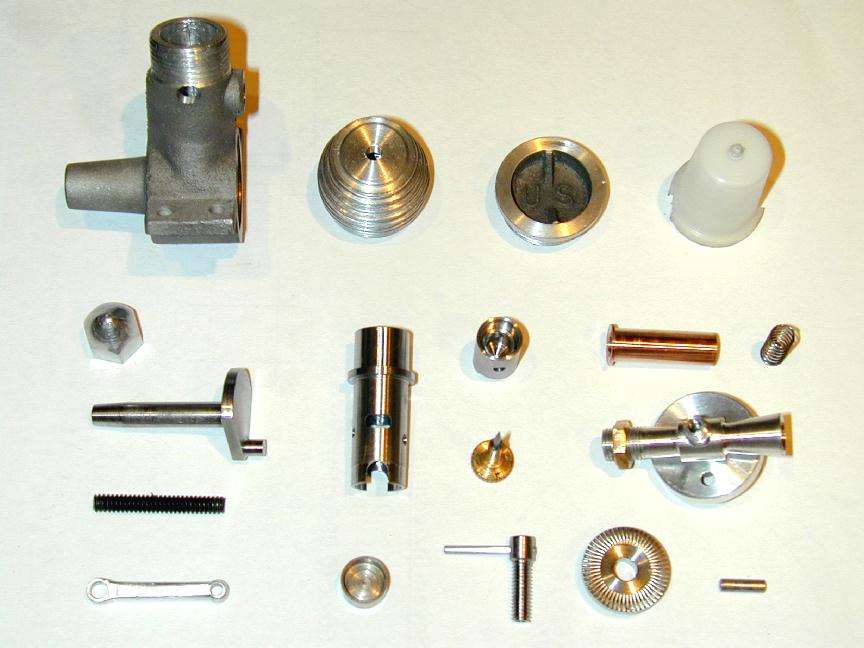 After working through a few problems that others now won't see, my example is a terrific little performer. It turns a Cox 7x3.5 plastic prop steadily at 10,200 rpm. This is considerably better than the Indian K75 replicas I've handled and an improvement on the original too! It can reliably be backed off to 4,500 rpm by decreasing the comp, and it'll swing a 9x4 wood at 5K, just like the originals. Complexity wise I'd call it a *almost* beginners' kit. The qualifier is because it requires the manufacture and heat treating of a special cutter. Certainly anyone with some model engineering experience, but no IC building behind them should have no great trouble. Still, making the cutter is not that difficult, and Roger will supply full details in his ECJ series. I tried an experiment on this engine and the Pepperell replica: using a steel piston running in a steel liner with almost no taper. So far, it's exceeded expectations, but I want to try it a couple more times before recommending it as an alternate to the usual cast iron piston in tapered steel cylinder.