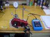 Here's an idea for reverse engineers from Aaron Novak. The nice red anodized gizmo is a rotary encoder, a commercial unit called "CamLogic" which has a 0.1° rotary resolution. The plunger DTI probe is positioned over a valve. Aaron starts by finding Top Dead Center for the engine by probing the piston and averaging the rotational position from a 0.050" downward stroke on both sides of TDC. The cam lobe centerlines are then found from the rotational average of a 0.020" drop from peak lift on both side of the lobe. As well as reverse engineering cam timing and profiles, the setup can be used for determining port timing on two-strokes. Sure beats the degree wheel and scribing block pointer I use.