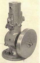 The engine has a bore of 2-1/4 in. and a stroke of 3 in. Its overall height is 17-1/4 in., and the flywheel is 10 in. diameter by 1-1/2 in. face width. The body of the engine is a single casting, including the cylinder barrel and water-jacket, and a broad circular flange 10 in. diameter, on the underside, which forms the mounting pedestal. A rather unusual form of crankshaft construction is adopted, incorporating a main journal with a large cast-iron disc, apparently riveted on, forming both a balance weight and an internal flywheel. The crankpin, outer web and journal appear to be in one piece, riveted into the disc, and the scroll gear appears to be either cast or machined integrally with the disc. As the crankshaft assembly was badly bent, no attempt has been made to put the engine into working order so as to enable a running test to be carried out.