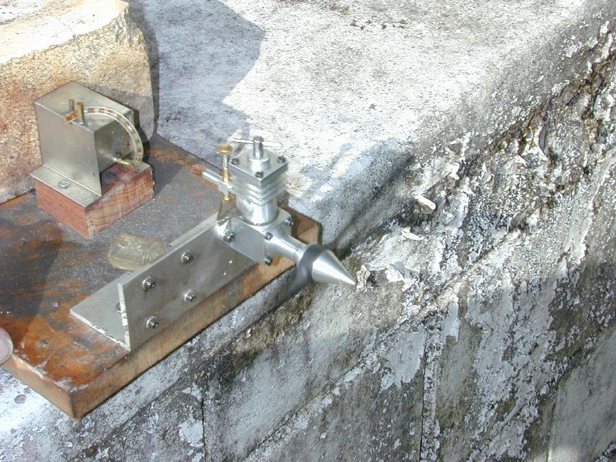 Point 1. An obviously CAD omission. I'm sure it will be fixed up in a subsequent issue addendum. Use 0.562" as shown in the EZE-1 drawings for liner OD and Cylinder bore. Point 2. This item is a bit more serious. First, the liner is a light press fit in the case (needed to prevent crankcase pressure leaking out the exhaust ports). The recess in the top of the crankcase fully encloses the lip on the cylinder liner. This means that there will be no protrusion to grip the liner by to remove it. Probably not a bad idea as this forces one to make a tool that grips something else for this purpose (I don't believe you are never going to want to take it out!). Perhaps the threaded mandrel that screws into the top of the contra piston for lapping will do the job, if the crankcase is heated enough first. The depth of the recess is critical as it establishes the location of the liner ports in relation to crankshaft axis and hence will set the timing. Further, if the recess is just a little too deep, or the flange a little to thin, the head will not clamp the liner to the crankcase allowing it to emulate an uncontrolled sleeve valve (press fit not withstanding). Second, the design calls for the use of the EZE-2 cylinder head which has a recess on its under face 1/32" deep. This was fine when it was used with the EZE-1 component layout, but will prevent the head applying any clamping action here. There are several possible fixes, some involving small but significant changes to several dimensions. The fix that minimizes the interaction is to increase the height of cylinder by 3/64", applying all this increase to the 5/8" diameter top flange. This makes the flange height 7/64" (.109") and permits the head recess to firmly locate the part in the liner and ensures the head screws clamp the liner into the crankcase. Other fixes are possible, but this involves the least changes to other parts. The compression screw from the EZE-2 drawing should be increased by 3/32" in the threaded portion to compensate for the extra height, plus a bit extra. Point 3. As with item (1), this omission will doubtless be corrected by the designer, or someone, in a forthcoming issue of MEW. The port center line is called out using the liner base as a datum. I'd have thought the bottom of the flange would server as a better datum as this is the locating surface. The liner bottom can be anywhere, within reason. Point 4. This problem has existed since the EZE-2 drawings were published and has received no mention - perhaps because it's too "obvious", or perhaps because no one has built one and reported the problem. Simply put, if you add up the dimensions, fore-aft, of all the parts inside the crankcase, they equal the depth of the crankcase. So depending on your building tolerances, the assembled parts may lock up solid, or the crankpin may rub on the backplate. No big deal. Something needs to be reduced by 10-15 thou. Crankshafts should have some end-play when assembled and the prop tightened up - at least 5 thou, but probably not more than 10. At its rear most movement (like when being flicked) the crank pin should clear the backplate - 5 to 10 thou would be adequate. Solution? I found the problem after all the bits were made, so I had to thin down the backplate extension into the crankcase by about 20 thou. This required a rather dodgy setup (no photo - too embarrassing). Better to know about it in advance. I think the best solution would be to thin down the crankshaft thrust face from 1/32" to 1/64" - but you need to know about this in advance too! Point 5. This item is common MICE sense too. The web is not a bearing! (Although some twins have been made like this). So just reduce it to give some clearance. On these last two items, don't go overboard. You should aim to achieve to closest working tolerances you can that will minimize crankcase volume, which maximizes primary compression and assists fuel pumping action (I'm sure there's more to it than that, but I don't know what..) Point 6. The crankcase drawing never really establishes a datum and just plops the venturi mounting boss out in the air, dimensioned, but not positioned. I'll continue talking in fractions, but in the age of A$50 digital vernier calipers, there is no excuse for not working to 3 decimal places. Assuming the recess in the top of the crankcase is 1/16" deep, the boss center line should be 25/32" from the top of the crankcase, or 23/32" from the flange seat (better), or 21/32" up from the crankshaft axis (See what I mean about establishing a sensible datum? Which of those would you rather measure from?). Day 1 (Crankcase):I'm going to try to complete this engine within 10 days of evenings, or less, so I can get back to the Weavers. The photos above show my alternate way of machining the crankcase. The sequence is: