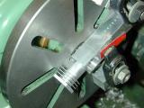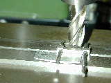 Nothing special in the drilling and taping operation either. How you center up and lay out is dependant on the equipment you have. The most important tip is to make sure everything is clamped firmly. In photo #5, the work sits on parallels in the machine vice with business card stock protecting the finish. I should have centered it in the vice too. Oops. Don't even think about doing this operation holding the work by hand under a drill press! For marking out, I cheat. My mill has a Digital Readout (DRO) that lets me do coordinate drilling of Pitch Circle Diameter (PCD) holes. This is so precise that provided I center accurately, the plate holes and crankcase holes mate up in any orientation. So, assuming you are positioned and working on the front cover, the sequence is: