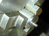 This page presents, in more detail than I'd intended, the building of an EZE-3. The project was started on Wednesday, November 3, 1999 and completed, ready to run, but without decorative anodizing, on Monday, November 8, 1999. I put in a solid working day on the Saturday, but the rest were relatively leisurely evening sessions in the shop. I was quite anal in keeping to dimensions of all working parts, plus virtually all external contours as well. My only deviation was the use of a split cone to secure the prop drive washer and the shape of said washer. It's true about what a single picture is worth. Certainly lots more than my thousands of words. I've just taken a few photos during construction of points that would illustrate what I thought were worthy steps. If there is some particular setup, or process that you'd like to see, email me and if possible, I'll dummy up the shot and add it to the page. Note to builders and prospective builders: The plans for the EZE-3 appeared in the Sep/Oct 1999 issue of MEW. However, the engine requires some parts from earlier EZE drawings. Specifically, the front bearing housing and prop driver from the EZE-1 (MEW, Nov 1998) and the Cylinder head, compression screw, back cover and crankshaft (modified) from the EZE-2 (MEW, Jan 1999). The EZE-3 plans have several dimensions omitted which I'm sure will be dealt with in the pages of MEW in two months time. There are also some "gotcha's" relating to the cylinder liner and head layout. This may be an artifact of the modular design, coupled with the fact that the developer/designer was not the draftsman. So, if you are going to build one, note the following carefully: