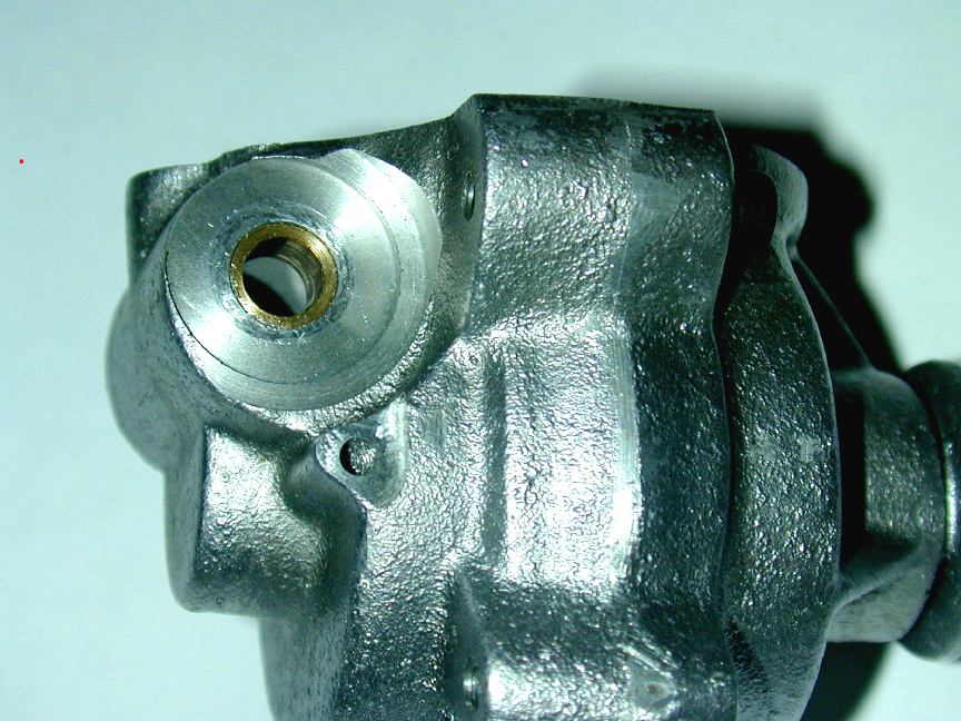 The case can now be counter bored (or faced, whatever) down to the required depth using a left hand tool to form the outside half and a right hand tool to finish up to the pressed-in camshaft bushing. The bushing will be used to locate a thin disk of aluminium that will form the bearing that positions the timer body.