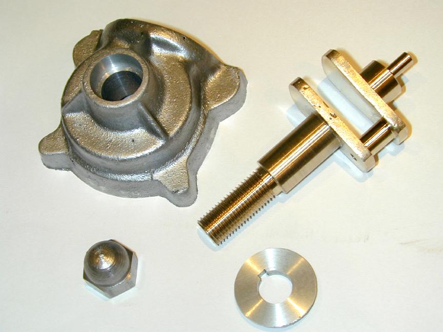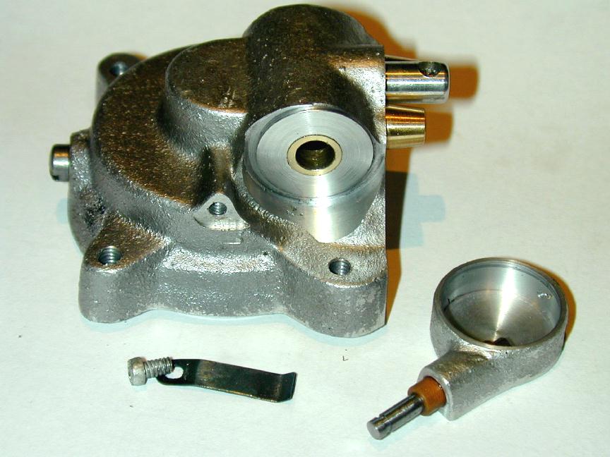 The disk is turned to be a close working fit inside the timer body, drilled to be a press fit over the cam shaft bushing, and parted off 1/32" thick. Before parting off, a light rebate 0.001" deep is made from the center to within 1/16" of the edge. This forms a space that can be filled with Lockitie as a bit of added insurance against the disk ever working free after it is pressed onto the protruding camshaft bearing stub.