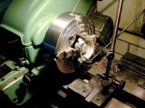 - Mount the case half in the lathe, concentric with the cam shaft axis.