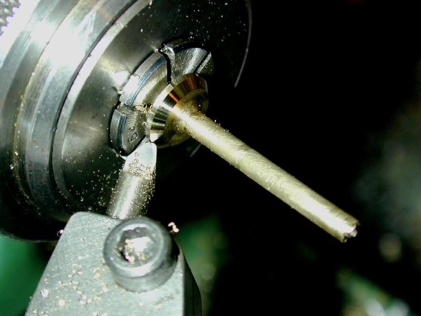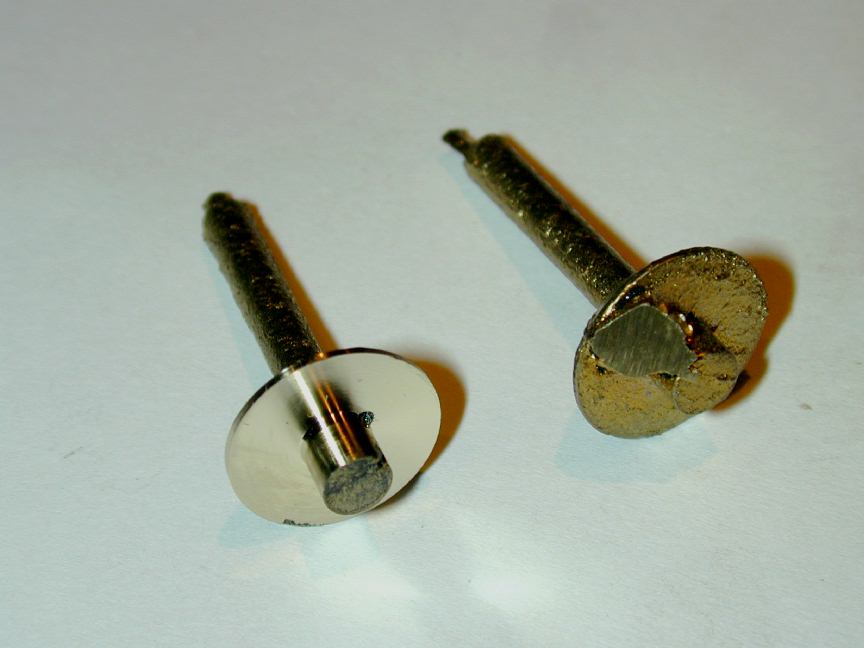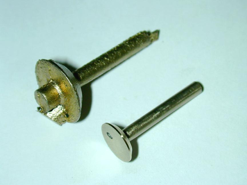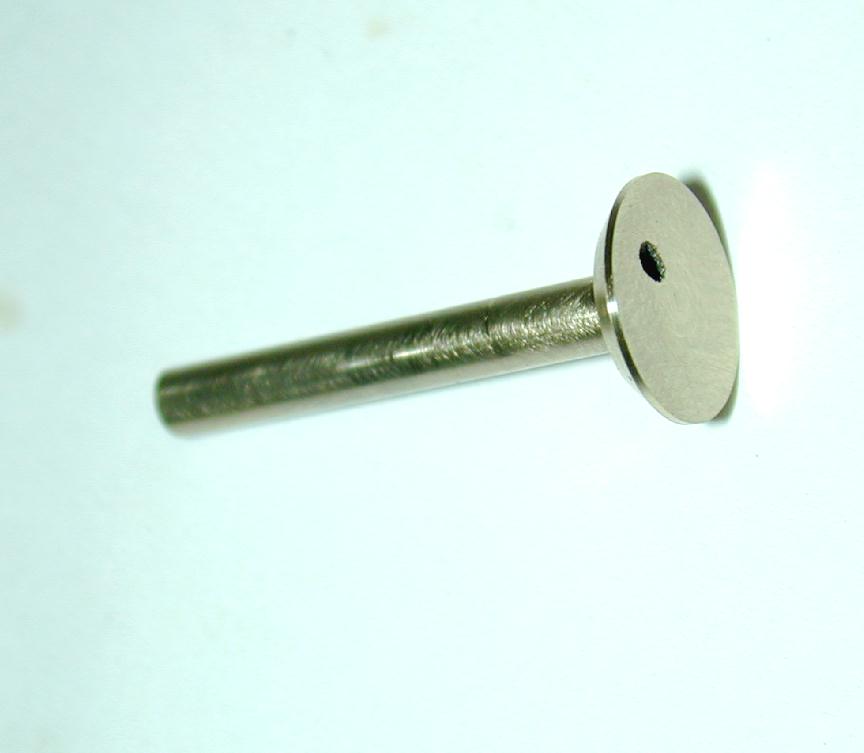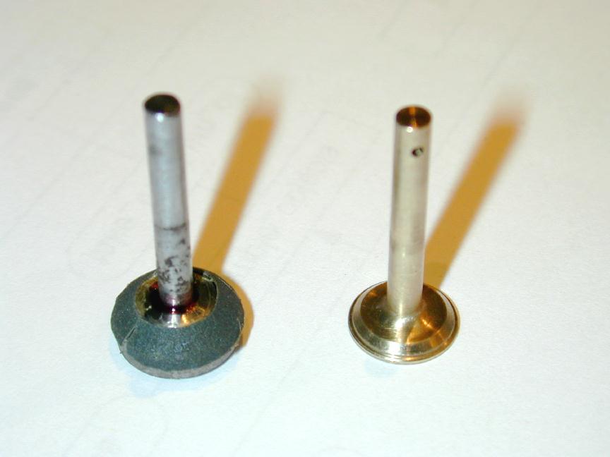 At one time, I'm sure you could walk into a hardware store ("ironmongers" they were called in my youth) and say "two one-thrity-second cotter pins please". Well let me tell you that progress has put a stop to all that nonsense! The Feeney valve springs are of the "hair pin" variety that I've heard termed "zero-rate". A detent in the top of the spring engages with a cotter, or "split" pin inserted through the hole in the top of the valve stem, holding the valve closed. A side effect of this arrangement is that the valve cannot rotate, so it only has to seat in one position. I guess the downside is that in not being free to rotate, there is no wiping action available to remove particles that might interfear with the seal. At any rate, with no commercial product available, I decided I'd have to make my own.
