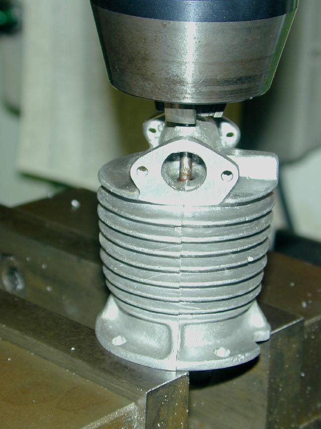 Now you can block off the plug-hole and blow into the bore. If air escapes, one or other valve is not seating. Find out which by closing off the ports. If the seat has been "lapped" adequatly, there's no point trying to fix it by more lapping. Besides, Bruce Satra says that the smaller the width of the seat band, the better. The seat needs to match its actual valve. I was stumped until Bert Streigler related how he used to seat new valves into Model A Fords: make a wooden dowel about the diameter of the valve head. Place the valve in position in the head, position the dowel over the valve head, then belt the other end of the dowel with a carefully calibrated hammer. In despiration, I tried it, and and to my surprise and delight, it worked just fine (note to self: trust whatever Bert says, regardless). After the requisite number of calibrated wacks, I could play the valves like a saxophone, and most importantly, turn blue trying to blow into the cylinder when both were closed. This thing may actually stand a chance of running after all!