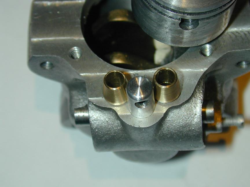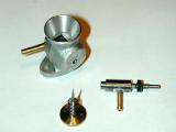 The Feeny carburator was designed to have a choke device reminescent of the rotary barrel of a modern R/C carb, but there the similaraty ends, as the fuel jet was fixed. The history of the Feeney printed in ECJ details how the factory would spin-up new engines with an electric drill and a flywheel, the adjust the height of the jet until the engine would run without the drill. The jet was then crimped in place. Forgive me if I choose to do things a little differently.