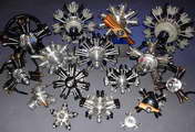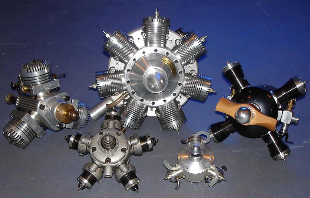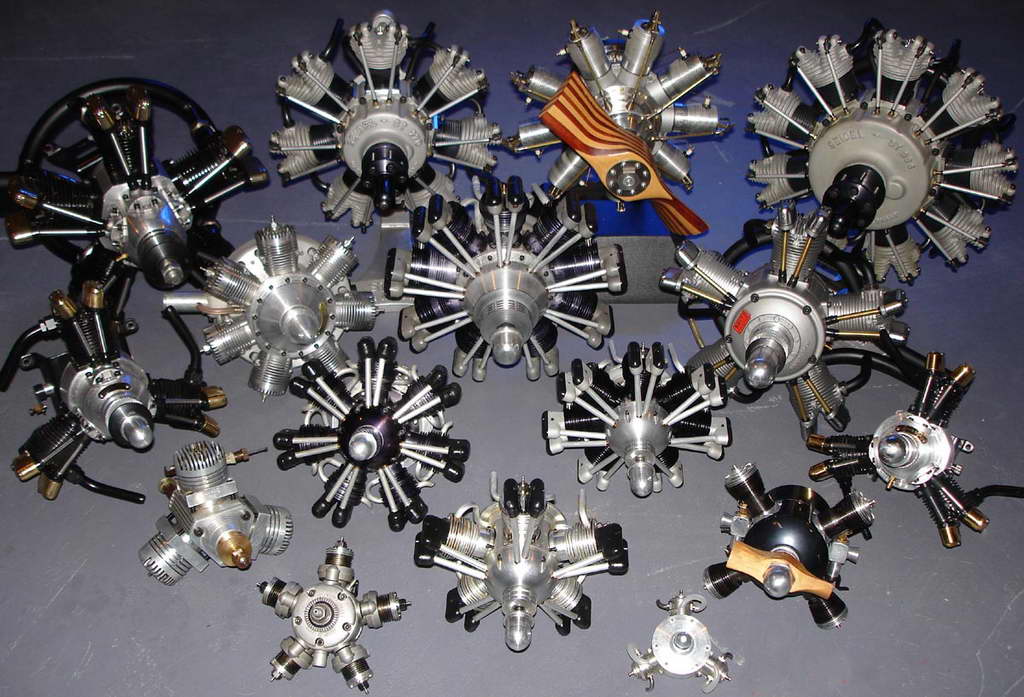 It seems that there is a pattern to collecting, regardless of what the subject of the collecion may be. Most collectors don't suddenly decide to start a collection, they acquire something, then another, and another. Before they know it, they have a capital-c Collection and have become a capital-c Collector. There are stages to collecting too. Initially, a collector will collect anything that fits their chosen subject—be it model engines or stamps! The next stage is to refine the collection to a specific subset of the broader category. The photos here are an excellent example of a "mature" and mouth-watering collection. The category is model engines, while the sub-category would be best termed round engines. The top picture shows the entire collection. The one below shows a collection within a collection: two-stroke radials (extra points go those who can spot the other sub-category exemplified by a single example). The photos were supplied by Steven Satkiewicz. Steve says he's financed the collection and avoided the divorce court by buying motors by the lot, cleaning them, then reselling them. |