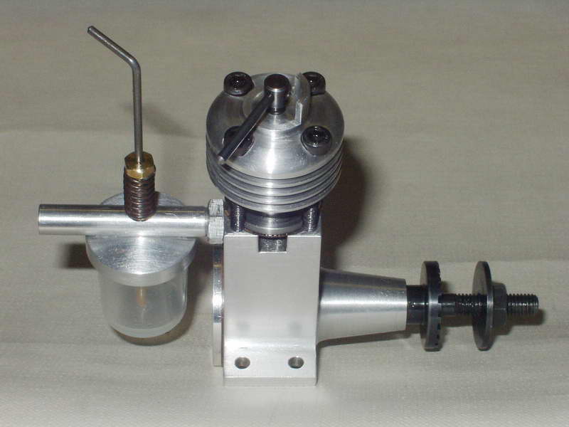 I started the crankcase in a fit of enthusiasm as soon as your article in MEB came out, then it went into the pending tray while I built 2 Midges and a Sparey .8, I decided I did not really need another Mills as I have some originals, so as Mills blatantly copied the Allourchey I built one based on your Mills design. The main differences from your drawings are that I raised the deck height and made the con-rod longer to suit, the head and liner are held down by long bolts, the taper on the bearing housing is greater, the threaded portion of the crankshaft is longer and my favourite features are the head with built in compression stop, the castellated prop driver and fuel tank /venturi which is much prettier than the Mills. I did not copy the Allourchey flanged 2 bolt venturi fixing (too much like a steam engine part). Every picture I could find was different so this is my version; not a replica; but in the spirit of the original. If you look at the line drawing in Model Diesels 1946 (page 67) the draughtsman must have had it taken from his drawing board before he was finished as the exhaust ports are not drawn and the mountings are not complete! I started it up today and it runs very well, just by way of comparison I ran my Mills 1.3 series 1 and they are very similar to handle but the Allourchey is slightly louder. |