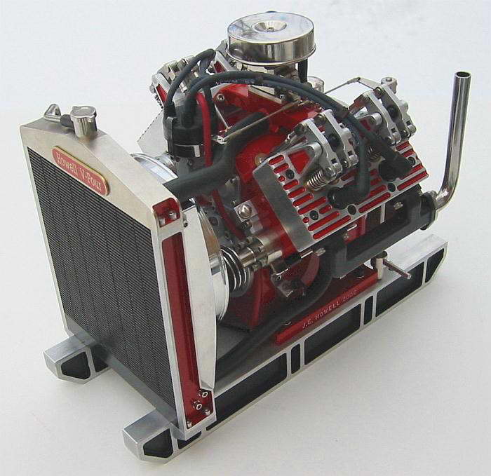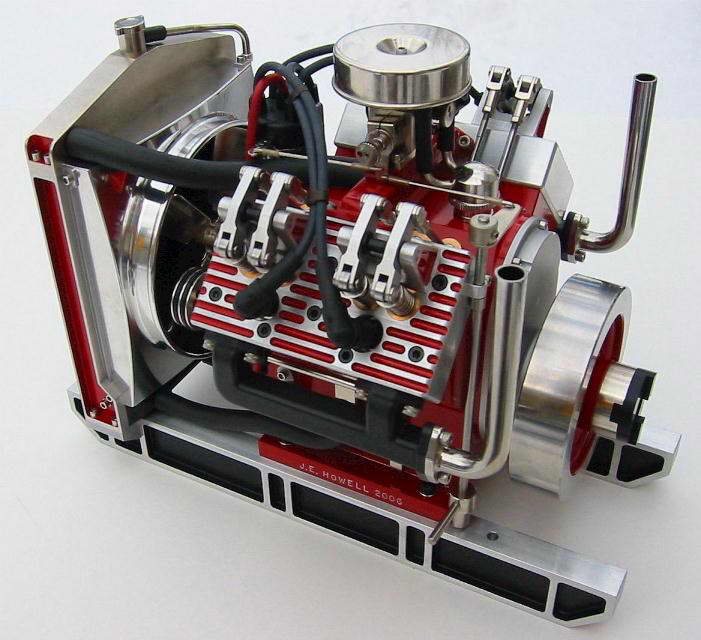 In case you have to ask, this is Jerry Howell's justly famous V4. Jerry sells full plan sets for this and other engines. The following description is taken directly from Jerry's Web Site: