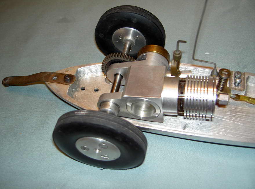 This a replica "Integral gear" Oliver Mk 2 motor I made by David Cunliffe (UK) several years ago. David believes that Oliver made only seven of the originals in the 1950's that which went to Sweden. The motor pictured here was taken to Hannover for the 50th Anniversary race in August 2007 and was run there. |