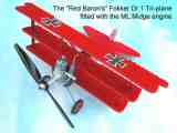 Well, as can be seen here, Orv has succeeded brilliantly, using the simplest of equipment: a little Unimat lathe and a hacksaw! This has been his his first engine project, which on and off—mostly off—has taken a mere ten years (you can't rush these things). Rather than just display it statically, Orv made a lovely little Walt Musciano designed Fokker Triplane (as kitted by the Scientific Model Airplane Co, way back when) and flew it all weekend tethered over the heads of the crowds at a Canadian Model Engineering show. Naturally, the kids loved it and Orv is now considering what his next engine project will be. |