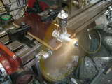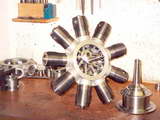 While I've seen small parts electro-deposited in a copper sulphate solution using a car battery in the workshop, this one was done commercially with Bruce Satra overseeing the project. Bruce is also producing the lost wax castings for the rest of the engine. He says that while the ring is magnificant, so is the cost with "Cerobend" fixturing allow running at $25 per pound. While it can be recovered and reused, doing rings one at a time is not economically viable. You need to do four or more at once and that is a lot of Corobend! |