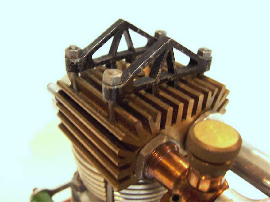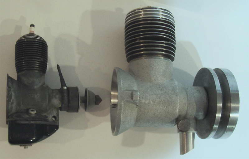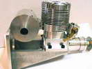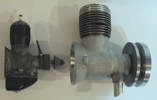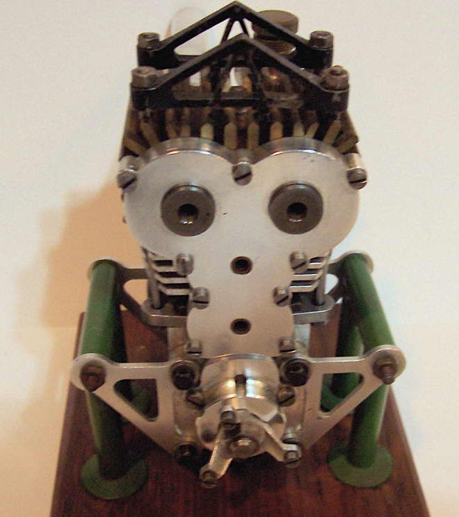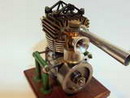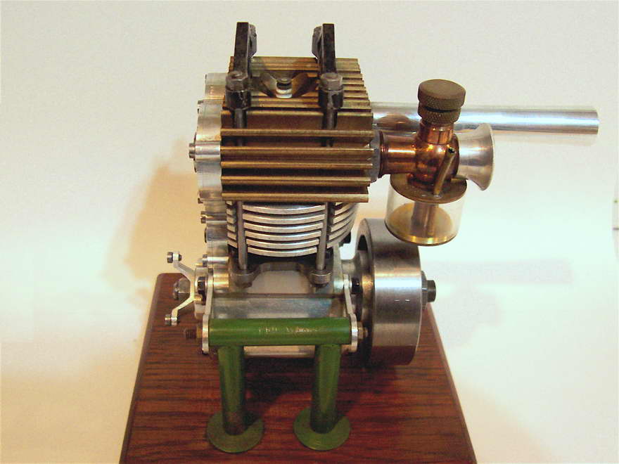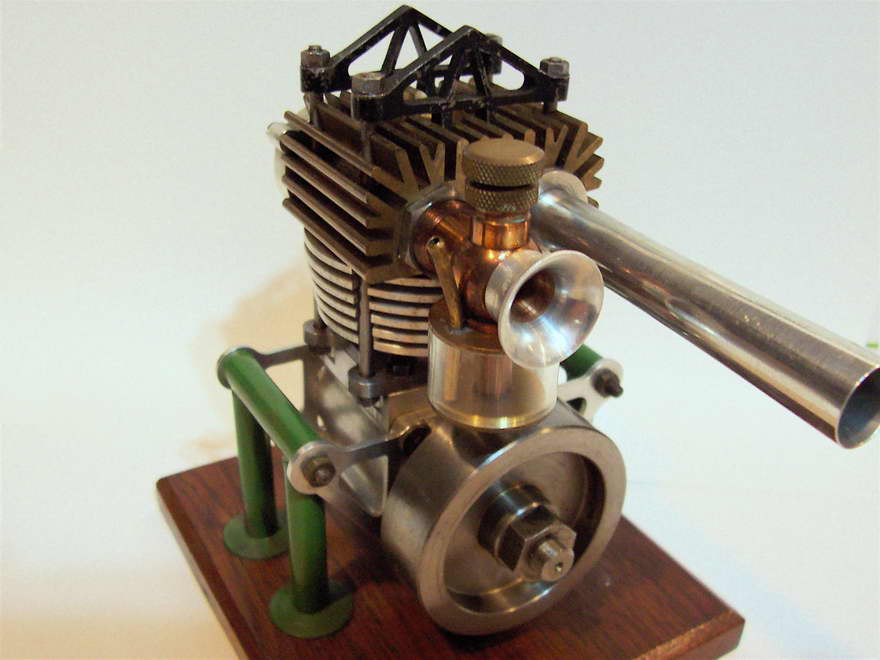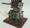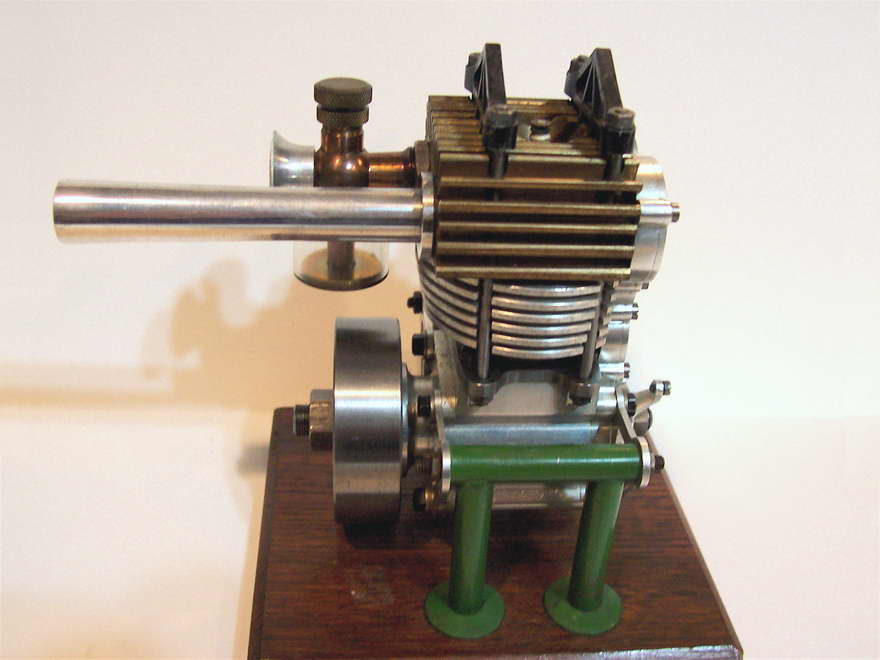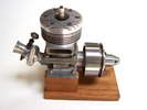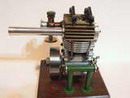 Darrel obtained this unusual engine in England during the early 1970’s. From what Darrel and his friend, Peter Fisher were able to determine, the engine was made in Exeter, England, however no mention of the maker was ever found. Three other examples of this unique engine have been seen, although all had broken crankshafts. The engine is about 0.60 cuin or 10cc, having a bore of 1.00" and stroke of 0.75". As seen in the last photo, it bears a visual resemblence to the US made Arden 0.199 cuin, although much larger. Write us if you can add any more details.