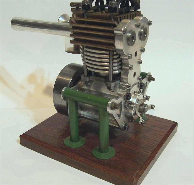 This four stroke gear driven drum valve engine made in England. It was obtained by Darrel in 1981 while he was living in there. It is believed to have been a submission to the annual engineering exhibition event held in the UK, but this is unconfirmed. The trusses that distribute the stud clamping forces look very steam-driven to me for some reason...