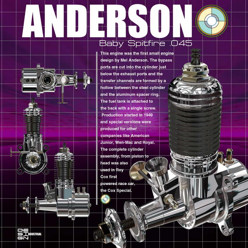 The engines on this page are rendered on a computer rather than a machine tool, but are very well made and presented regardless of the media. They are the work of Charlie Tomalesky and it should come as no surprise that Charlie does this sort of work commercially. He also happens to like model engines. Charlie takes some artistic license with his subjects, and none of them ever looked this good in the flesh, but to me, these are wall poster art material, and should be appreciated for what they are and the spirit they capture, rather than as mechanical representations of the subjects.