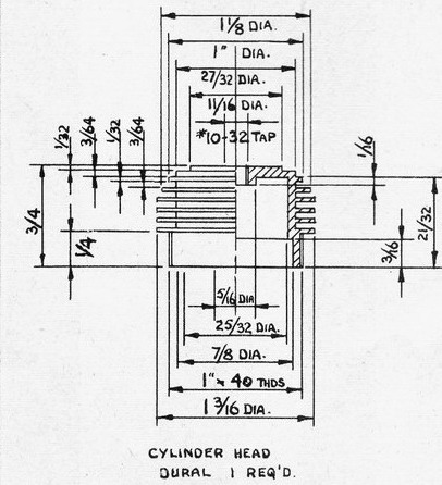 - Try part in cylinder and tap lightly into position taking care not to tilt or jam the parts. At this stage the engine can be partially assembled and it will be found that the 1/8 inch shank on the contra piston will project through the compression screw hole in the head. Clamp a prop onto the crankshaft and, with a little oil in the cylinder, flip prop to check that contra piston moves without using excessive force when a hydraulic lock occurs. Tap the shank end and flip repeatedly until satisfied, then remove head and check for compression leakage past contra piston. If the fit is definitely too tight, the 1/8 inch shank can be used for chucking, while the OD is eased slightly with a small oilstone. It is unwise to use emery paper. Having achieved the desired fit, the shank can be removed and the part gripped lightly in the chuck for cleaning up interior.