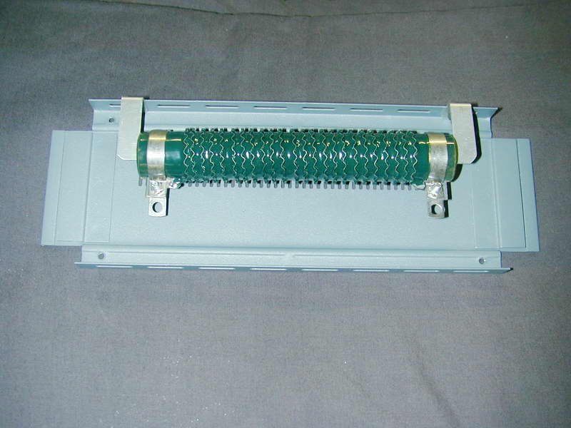 Here we see the giant R mentioned earlier (10 Ohm, 100 Watt). Ben wires two 20 Ohm 50 Watt resistors in parallel to achieve the same rating. It is mounted on shop-made brackets so it sits opposite one of the side panel cooling air exit grills.