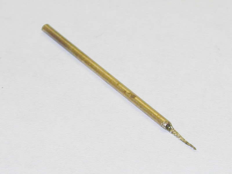 Tests show that the rate at which the electrode erodes depends on what it is burning into. For example, the brass tube electrode eroded much faster against the steel tap than the aluminium it was screwed into. This means that if you are sinking into two dissimilar metals, the electrode may erods away assymetrically and your hole will be deeper in one than in the other.