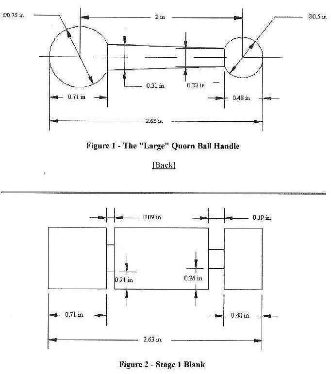 The Book states there are eight small and nine large ball handles to make. For convenience, these are shown in Figure 1. To pre-empt the last section to this article, there are actually ten large handles needed, but more on that later. With this quantity, I wanted a method that produced good looking handles with minimum fuss and no waste. This topic has supposedly been done to death in the literature. GT devotes a chapter to it in his Workshop Manual (which itself, reprints material that appeared in Model Engineer); Mr WJ Foulkes covered it in a two part article appearing in Engineering in Miniature, (Vol 15, p108 and 138). Professor Chaddock himself devotes space to it in The "Quorn" Universal Tool & Cutter Grinder, which I shall call "The Book" and assume that all aspiring, or even just plain curious Quorn devotees will already posses a copy.All three propose different ways of tackling the task. The good Professor uses a form tool made out of an old file which he has annealed and re-hardened. Perhaps files were more plentiful in those days but even my oldest ones are still useable and I was doubtful of the amount of horse power required to push a 3/4" diameter cutting edge into a lump of mild steel. The method has no waste, but looked impractical, so on to method two.