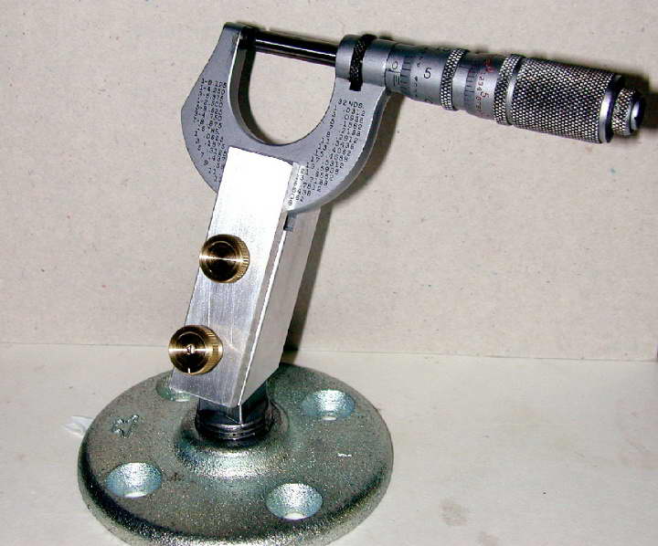 There are times when a third hand would be really handy. One of those times is when trying to accurately "mike" a bore gauge. Unless the rounded ends of the telescoping T arms are in line with the axis of the micrometer anvils, the reading will be wrong. Sure, the error will be small, but as this operation is used to measure cylinder bores on engines where tenths of a thou are significant, errors are unacceptable. The solution is a stand to hold the micrometer leaving one hand free to align the gauge while the other turns the screw.