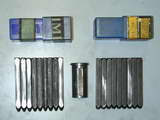 Peter Burford had warned me that the baseline for these type of stamps would be all over the place. His cure was a day spent with the surface grinder, magnetic chuck and some very careful measurement to get all stamps a common baseline. This process has the positive side benefit of removing any banana-itus present in the punch. Having no such equipment, I spent a mind numbing afternoon with the course side of my oil stone, honing away the worst banana bulges until all stamps slid cleanly through the holder. To hell with the baseline.