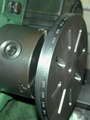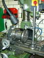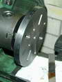 After some experiments, it was found that advancing 2° between numbers gave a relatively good looking spacing to the 3/32" high numerals. Now, a tip: if your set-up is exactly like mine with a 3 jaw chuck screwed onto a nose on your rotary table, screw that chuck up tight! The stamping is a violent process and loosened my chuck so that it unscrewed gradually without my noticing it. This resulted in the center of the number clusters gradually shifting away from being centered on the 10° division marks. Not seriously, just annoyingly. I'll sure remember this next time.