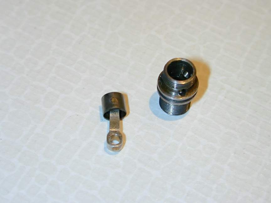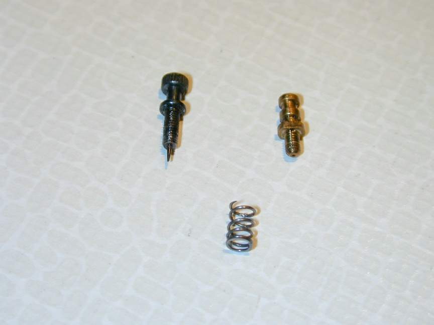 Again, apart from their size, there's nothing special about the needle valve components. I made the needle itself from steel and "blued" it by a quick heat in a gas flame followed by water quenching. No big deal, but the amazing thing is the attention it draws with people who examine the engine. If I had a buck (better make that US$10.00, for inflation) for every "is that a Cox needle valve?" comment...