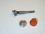 The cutter is used to form the exhaust ports in the cylinder. There are three of these, spaced at 120 degrees with sufficient space (!?) between them for the angled transfer ports to slightly overlap the timing. The crown of the piston is conical to assist transfer. The contra piston has a matching concave conical depression.