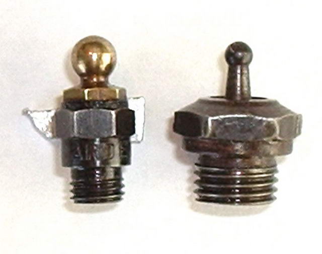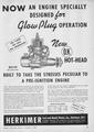 Of course, it was not quite as simple as that. While a glow plug might operate with the petrol/oil mixture used by spark engines if the compression ratio was high enough, best results were obtained by using the new "hot fuel" developed by Ed Chamberlin and Ben Shereshaw. This mix, named "Liquid Dynamite" by its creators, was based on methanol and nitromethane [4], so it also happily ate many of the plastic fuel tanks then in use, not to mention the nitrocellulose finish of the models. If you see references to "hot fuel proof" in old model advertising, you now know this meant the type of fuel used, not its temperature! The rights to the glow plug were transferred to Ben Shereshaw in late 1947, or early '48. Shereshaw then sold the rights to Herkimer who made the plugs under the name OK XL-Glow Plugs [3].