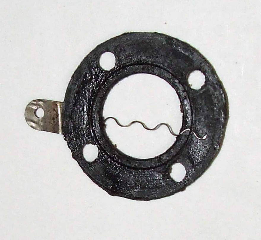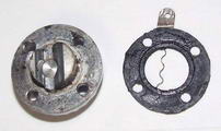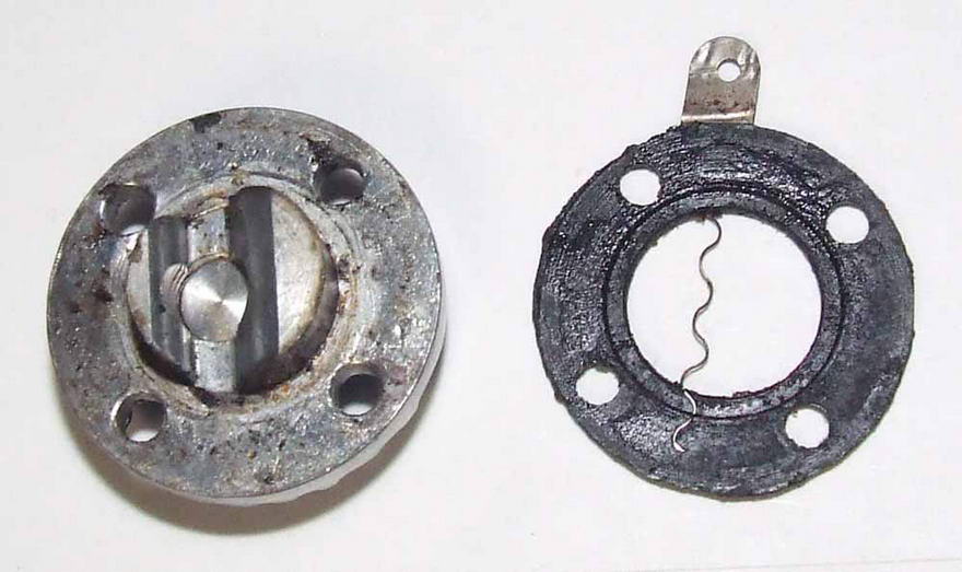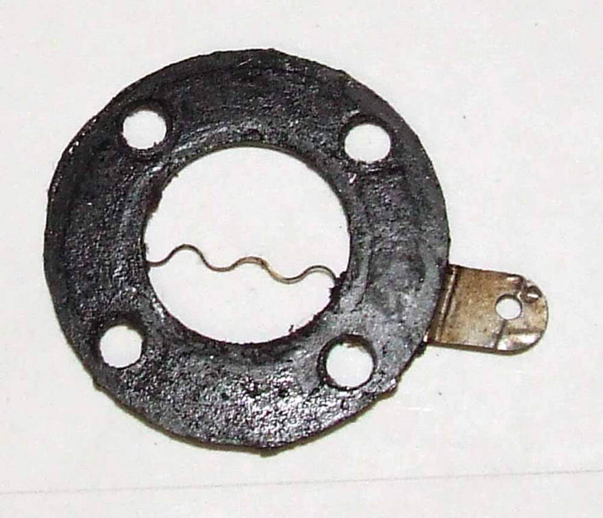 In 1949, seeing the way the wind was howling, Dick McCoy looked for a way around the Howie, Arden, and Ohlsson patents. His answer was the McCoy "Duroglow". A zig-zag coil, either nichrome, or platinum-iridium, we're not sure which, was sandwiched between two head gaskets. One side was attached to a metal tab positioned between the gaskets and protruding as an insulated contact. The other end sat on top of one gasket, making contact with the head, or cylinder as a "ground" contact when the screws were tightened [5].
