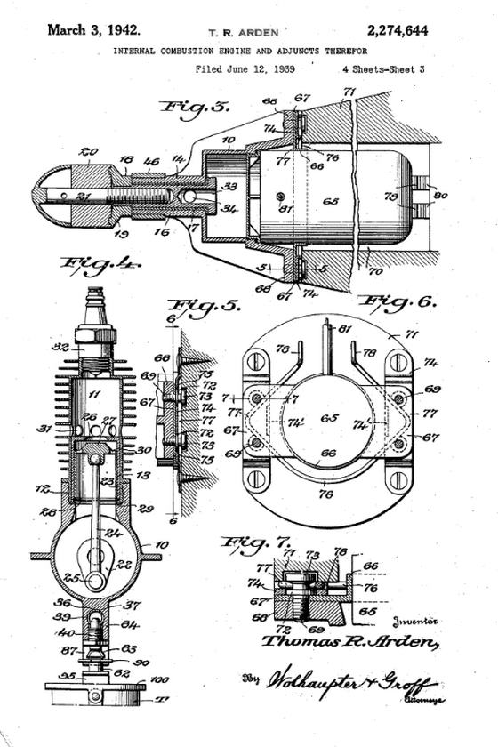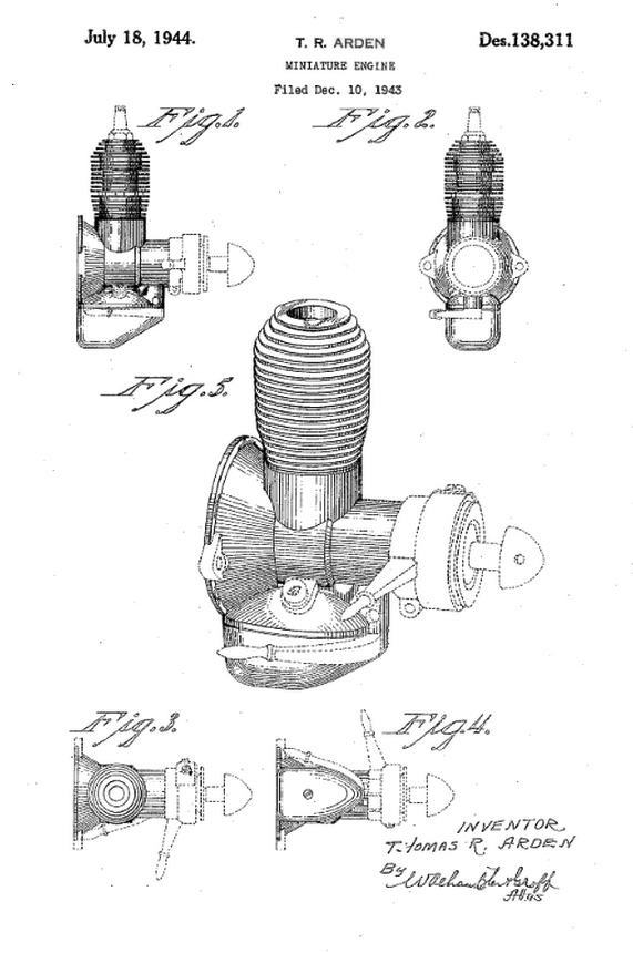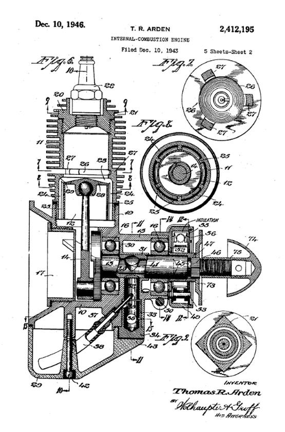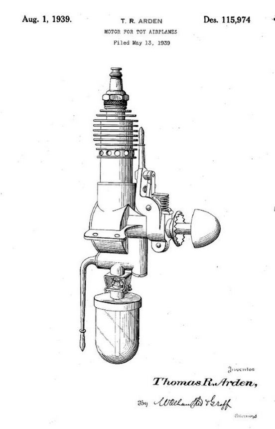 You can find several of Ray Arden's patents on-line through Google Patents. Some those which are relevant to model engines are shown below, with links to the full on-line document below the images. For the rest, enter "patent thomas ray arden" into the Google search engine and you'll discover his penchant for patenting unlikely toys, including things sure to delight boys of his bye-gone age, such as pop-guns and toy projective weapons!